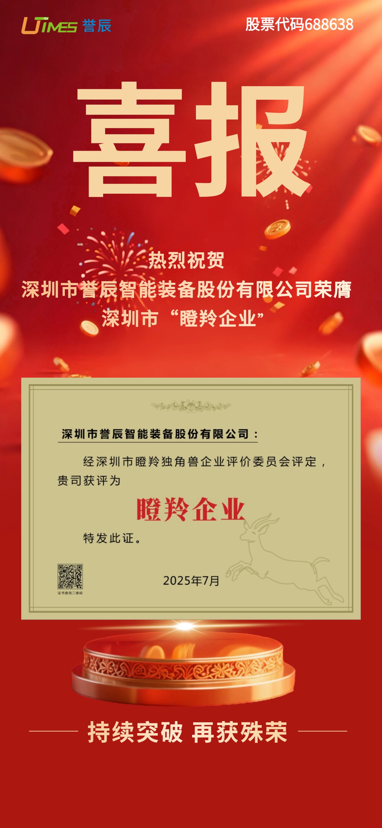 此次獲評深圳市 “瞪羚企業(yè)” 稱(chēng)號,標志著(zhù)譽(yù)辰智能在核心技術(shù)、產(chǎn)品質(zhì)量、市場(chǎng)規模和未來(lái)發(fā)展潛力等方面獲得了來(lái)自政府和市場(chǎng)方面的高度認可。未來(lái),譽(yù)辰智能將以 “瞪羚企業(yè)” 稱(chēng)號為新的起點(diǎn),繼續加大在科研創(chuàng )新方面的投入,不斷推動(dòng)技術(shù)突破與產(chǎn)品性能迭代升級,為全球鋰電客戶(hù)提供更加先進(jìn)、高效、智能的裝備和解決方案。同時(shí)積極響應粵港澳大灣區科技創(chuàng )新政策,參與區域內智能制造產(chǎn)業(yè)集群建設,為推動(dòng)我國新能源產(chǎn)業(yè)高質(zhì)量發(fā)展貢獻更大力量。